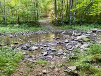 This is a great lollipop loop hiking trail. Some of it can be used by horseback riders. It features amazing creeks (some you have to cross), bluffs, natural shelters, signs of old settlement, wildlife feeding plots, and a large natural arch along the River to River Trail portion of the hike. When wet, there are plenty of waterfalls to see. This route is on All Trails under Ferne Clyffe State Park which is where this trail is.